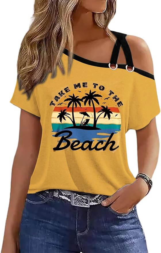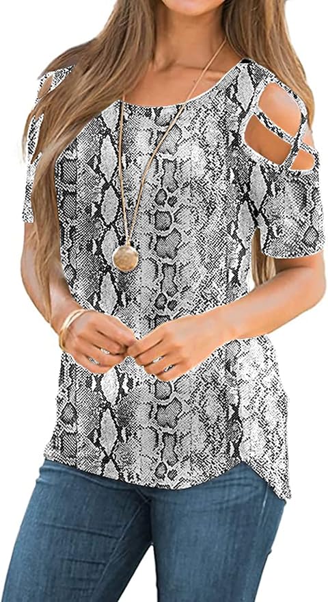 Womens Summer T Shirts Short Sleeve Tunic Strappy Cold Shoulder Tops