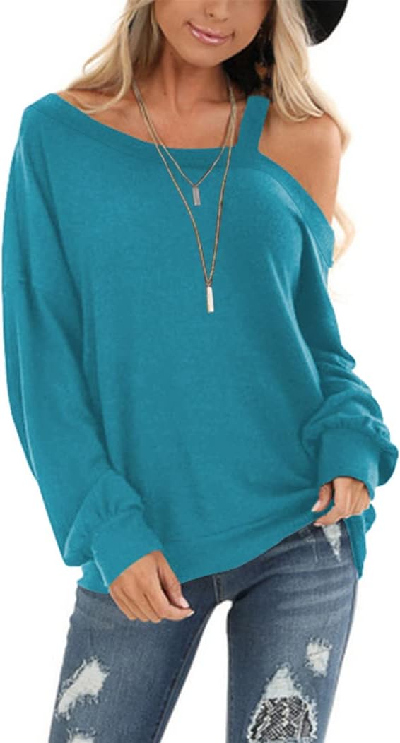 Women's Off Shoulder Tops Fashion Long Sleeve Shirts Boat Neck Casual Pullover Tunic Tops Blouses