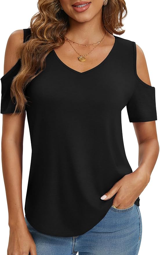Women Tops Cute Open Shoulder Blouse Summer Short Sleeve Tee Shirt